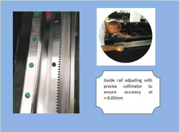| Ime:Precizni linijski vodiči Napredni sistem rezanja, laserski pogon i servo kretanje savršeno odgovaraju jedni drugima, uvezeni visoko precizni zupčanik i sistem pogona nosača, zamjenjivi dvostruki radni stol, kako bi se osigurala veća brzina i preciznost obrade. | |